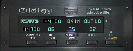 Oldigy is a plug-in that emulates the sound of low-resolution digital systems. With Oldygy you can emulate the sound of old samplers, game consoles, phones, or simply add digital distortion to your sound. Oldigy replaced Oldigy-T (track) in the Syntler product line. Now the plugin works in stereo mode. And also you can choose not only the bit depth but also the sampling rate. The plugin does not require instructions, if you know at least a little bit about digital sound.